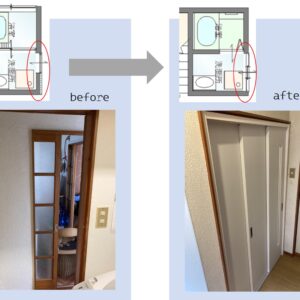 リフォームデータ 施工箇所 洗面脱衣室 建具 メーカー 造作 3枚引き戸 ← 片引き戸 仕様 出入口の有効幅が約30㎝拡張しました 「通りやすい、使いやすい」を実感!      […]