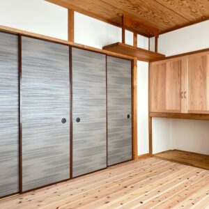 リフォームデータ 施工箇所 和室 仕様 襖紙:ルノン株式会社 「凜」     絣 no.304 胡桃色 床:ヒノキ 押入扉:スギ 壁:貝殻を原料とした自然塗料による塗装 特徴 無垢材や自 […]