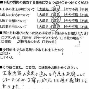 工事内容の変更や追加を何度もお願いしてしまいましたが、 丁寧に対応して頂き感謝しております。