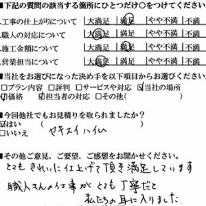 お天気との兼ね合いが少し気がかりでしたが、 迅速に対応していただき助かりました。