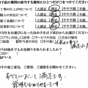 以前の工事でも満足した すべてにおいて満足です。 説明もわかりやすいです。
