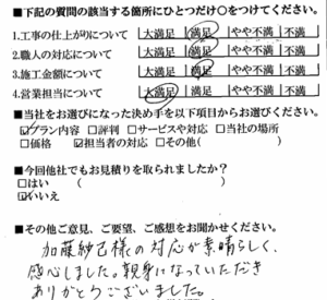 洗面化粧台 裾野市M様 対応が素晴らしく感心しました。