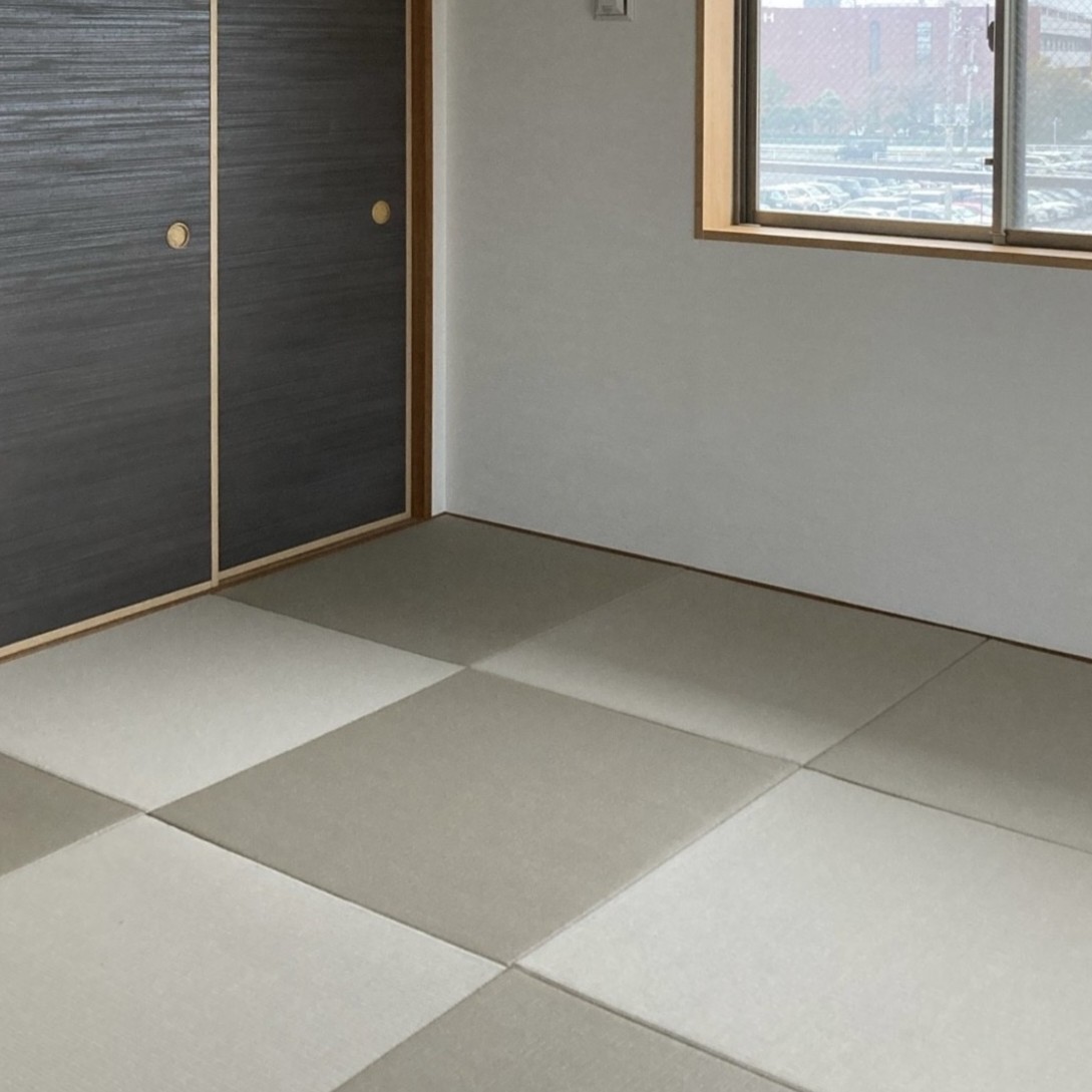 従来の縁あり畳から、すっきりとした印象の琉球畳へ変更することで、